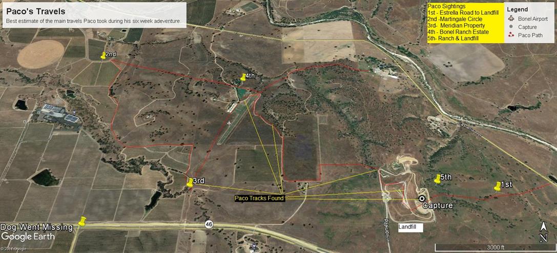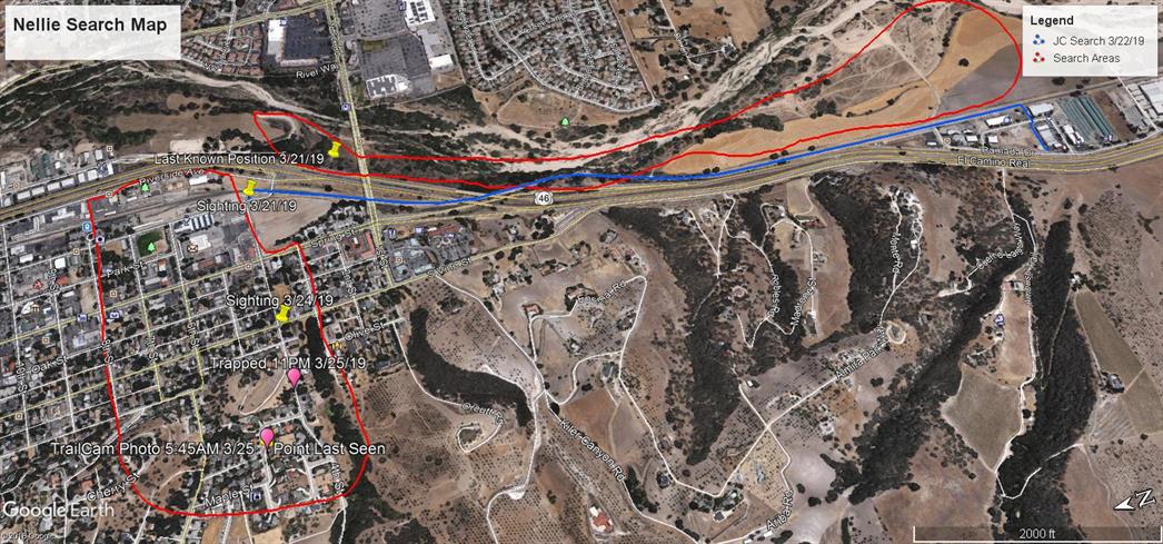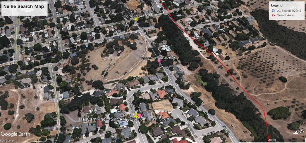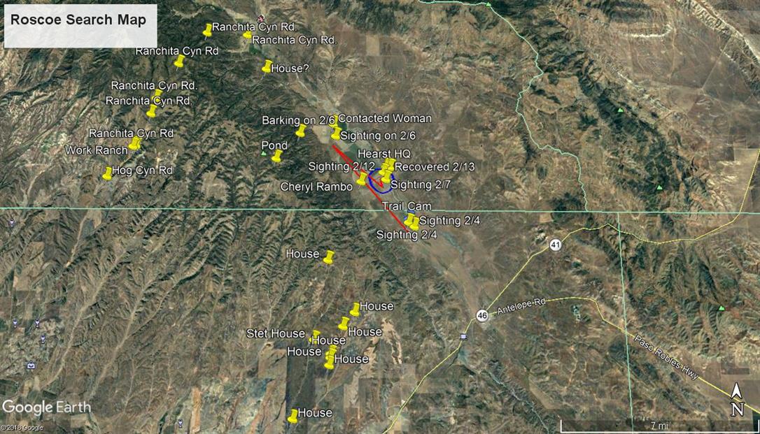 There are sources of fixed and dynamic data that you may choose to add to your map based on the circumstances of your search efforts. Google Earth, for example, has a long list of data available such as weather, buildings, water outlines, park boundaries and so on. Elsewhere online you'll find KMZ files which may relate to your search area and can be imported into your map. Lastly, other data sources may prove useful if you're attempting to solve issues which very uniquely are preventing progress to your search. These may include anything from police dispatch logs (often found online) which include location information, cell phone coverage maps from phone provider websites, to traffic information found online. While these data sources may seem odd at the moment, they serve as a reminder to think about what data, if made available, would aide in your search to find a lost (or possible stolen) pet. Sometimes the answer may surprise you.